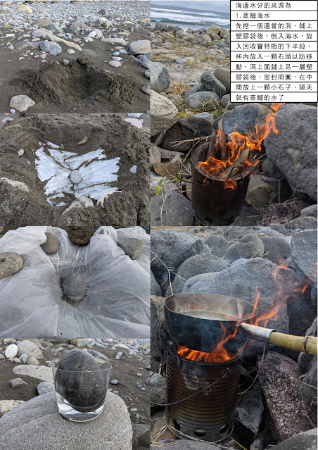 實踐的前期是製作物件進入大地的準備期,期間與3位植物學者學習戶外知識,從中更深入的踏查環境及運用;在製作基本存活物件也察覺過去先人生存非常不易,不論是改造或是創新器具似乎有更多的〝必須〞衍生出來,進而面對看似簡單卻如此困難環境因素。